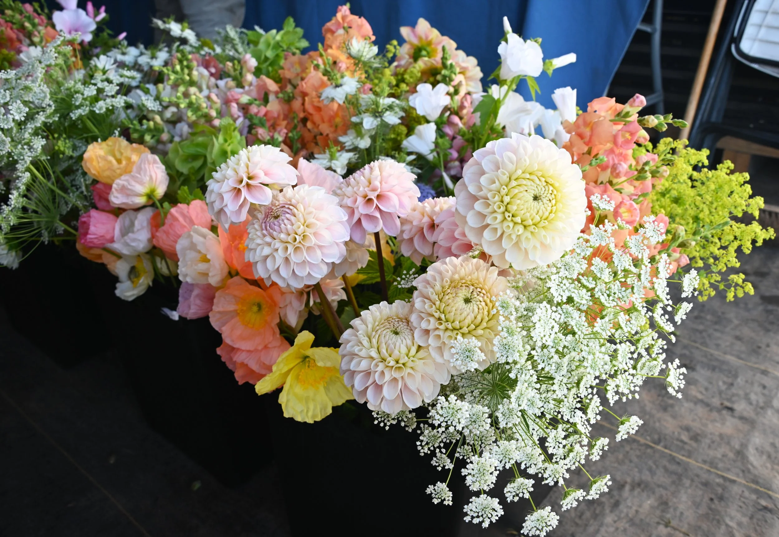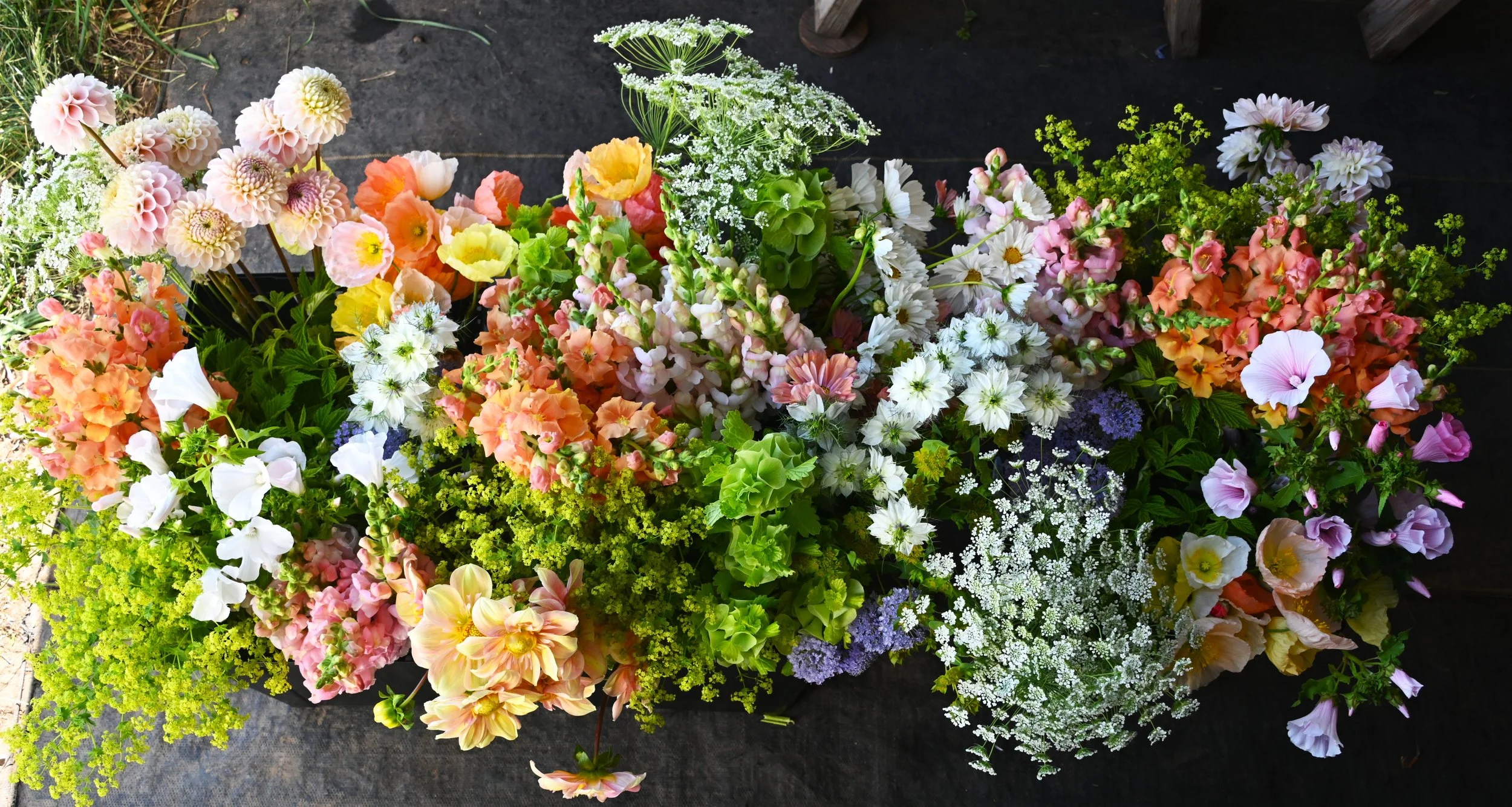 From mid-June through mid-September, we offer buckets of specially selected, seasonal, fresh, organically-grown flowers for DIY weddings and events. We provide you with the delicate filler flowers and textural greenery, stunning focal flowers and supporting colorful blooms you need to make your own arrangements. We know you’ll love working with top quality organic/biodynamic stems cut just for you. This is a great option for creative party hosts or couples who want to source premium wedding flowers at an affordable price. Availability is limited, so please contact us well in advance with your dates.