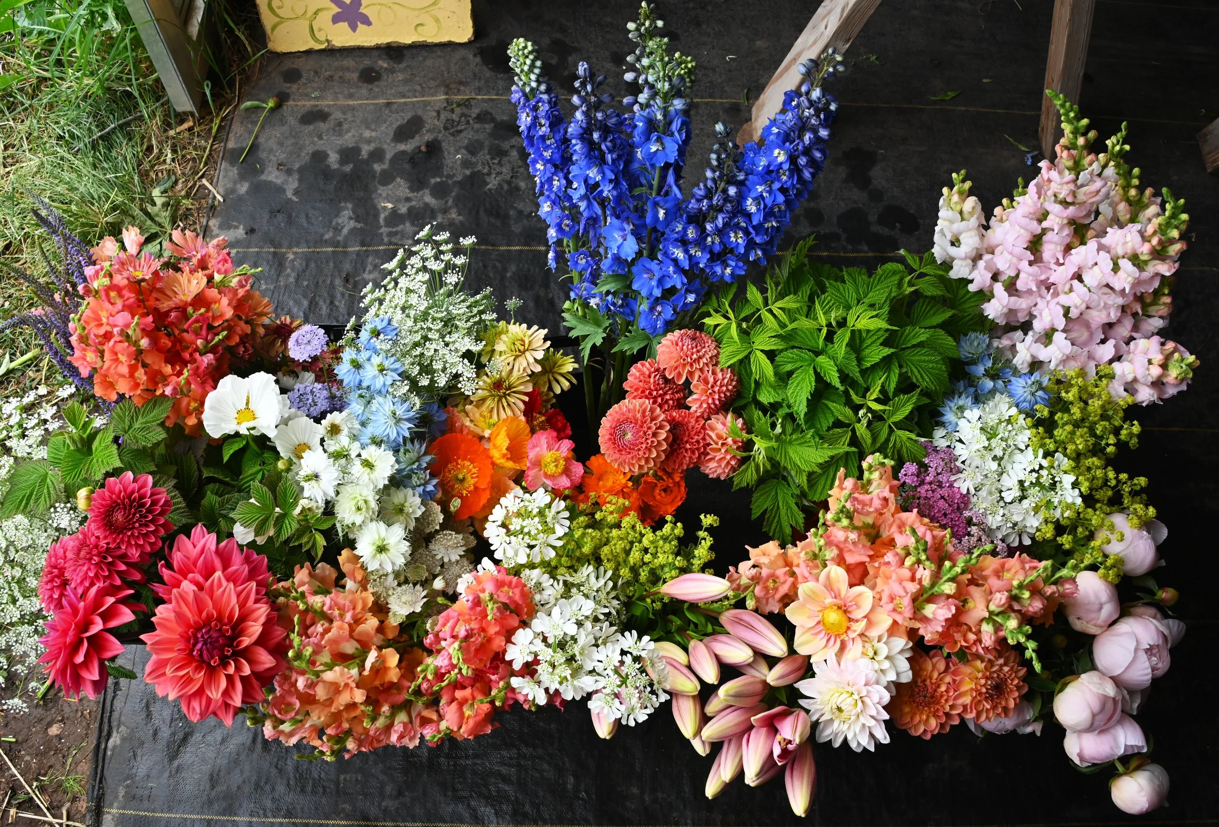 We provide the fresh flowers; you and your helpers design and create the magic! Be sure your have helpers lined up, time to work your magic, a well-lit space, snips, ribbon, vases, a way to transport your flowers safely, and a cool place indoors to store your flowers (a basement, garage or extra bed room works fine).